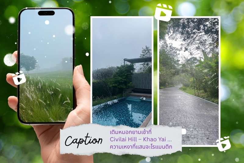 • Caption: “เติมหมอกยามเช้าที่ศิวิไลฮิลล์ เขาใหญ่… ความเหงาที่โคตรโรแมนติก”